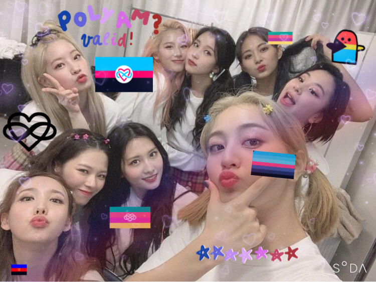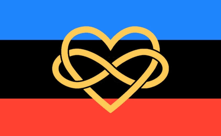 There's lots of debate surrounding the polyamorous flag. The original (pictured above), donning red, blue, black and a pi symbol is (for the most part) disliked because it makes the beautiful capacity to love polyams feel seem like a cold, calculated experience. It's also.. really fucking ugly. However, luckily, there are multiple variations of the flag!